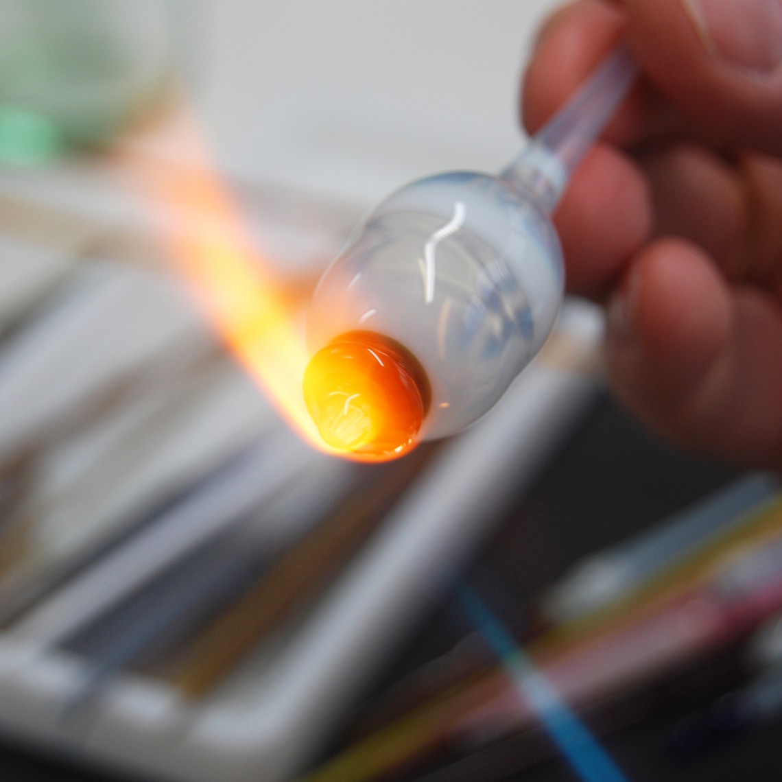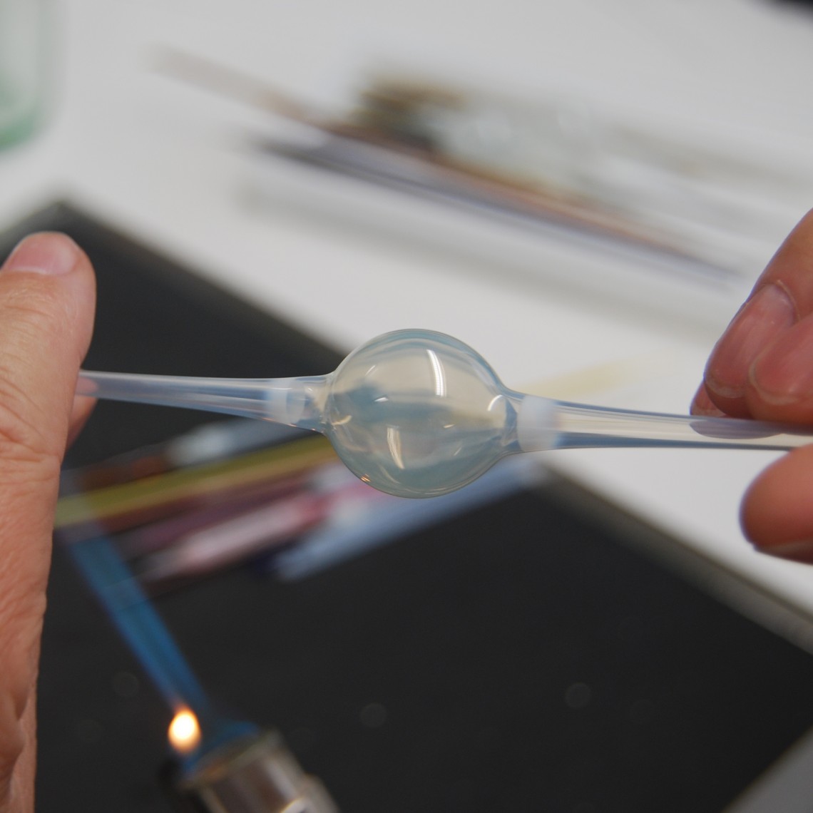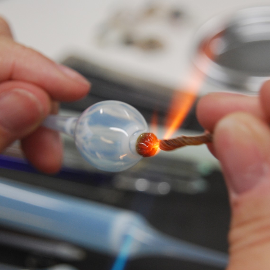 Abb.: Zwischenschritte und Rohlinge in der Glas-Kunstaugenfertigung