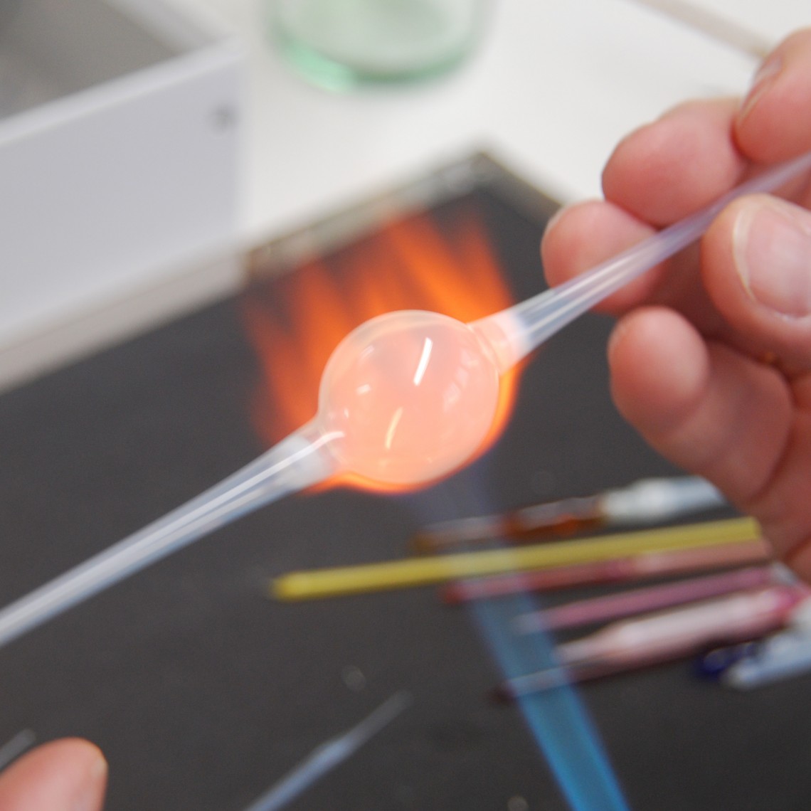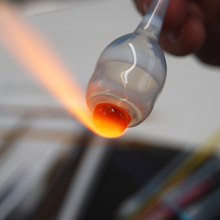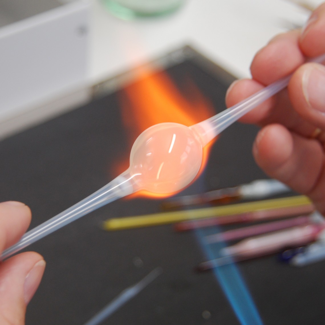 Abb.: Zwischenschritte und Rohlinge in der Glas-Kunstaugenfertigung