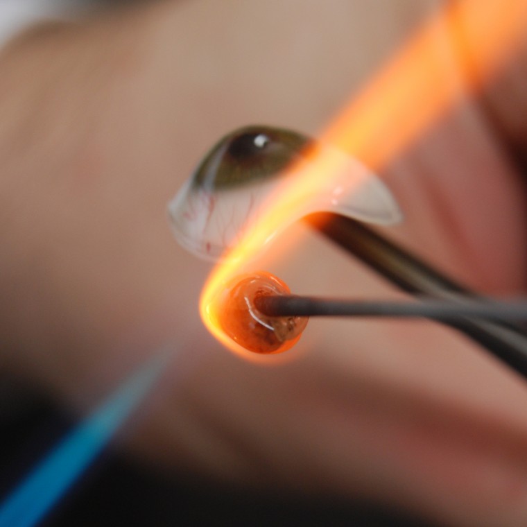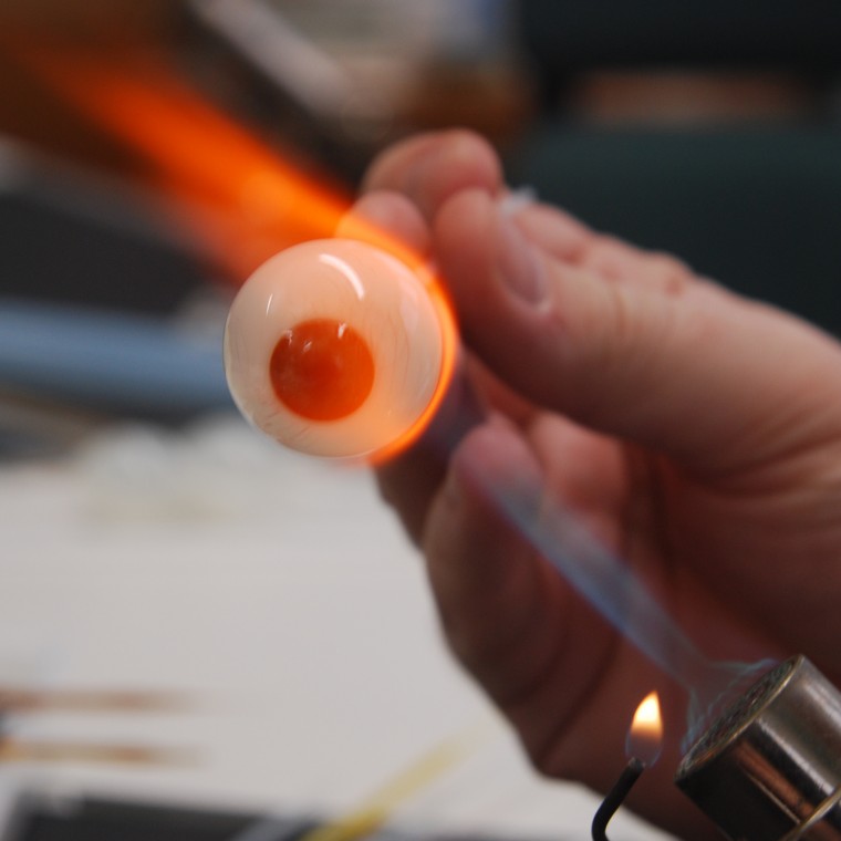 Hier können Sie sich durch die Arbeitsschritte der Glas-Kunstaugenherstellung klicken.