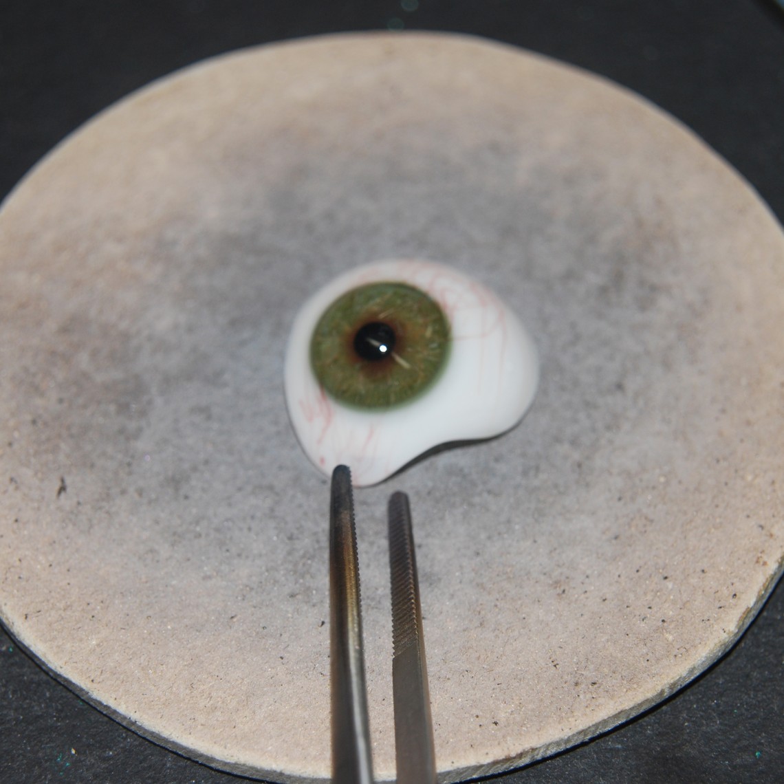 Da sich bei jedem Betroffenen die Orbita in ihrer Form unterschiedlich ausbildet, muss jedes Kunstauge individuell für die jeweilige Person angefertigt werden. Daher ist die Anfertigung eines Kunstauges nur in Handarbeit zu bewerkstelligen. Mit Hilfe eines Spezialbrenners werden nacheinander die Iriszeichnung und die Aderung der Lederhaut nachgebildet. Wenn diese Arbeitsschritte abgeschlossen sind, erhält das Kunstauge seine jeweilige Form.